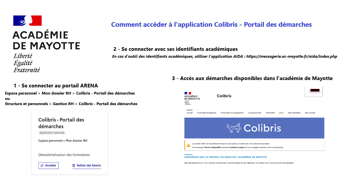 Les demandes d’ISG pour les personnels de l’académie de Mayotte et de l’Université de Mayotte se font exclusivement sur Colibris. L’agent pourra y accéder dès la réception de ses identifiants numériques académiques qui peuvent être obtenus sur la page d’assistance à l’identification académique.